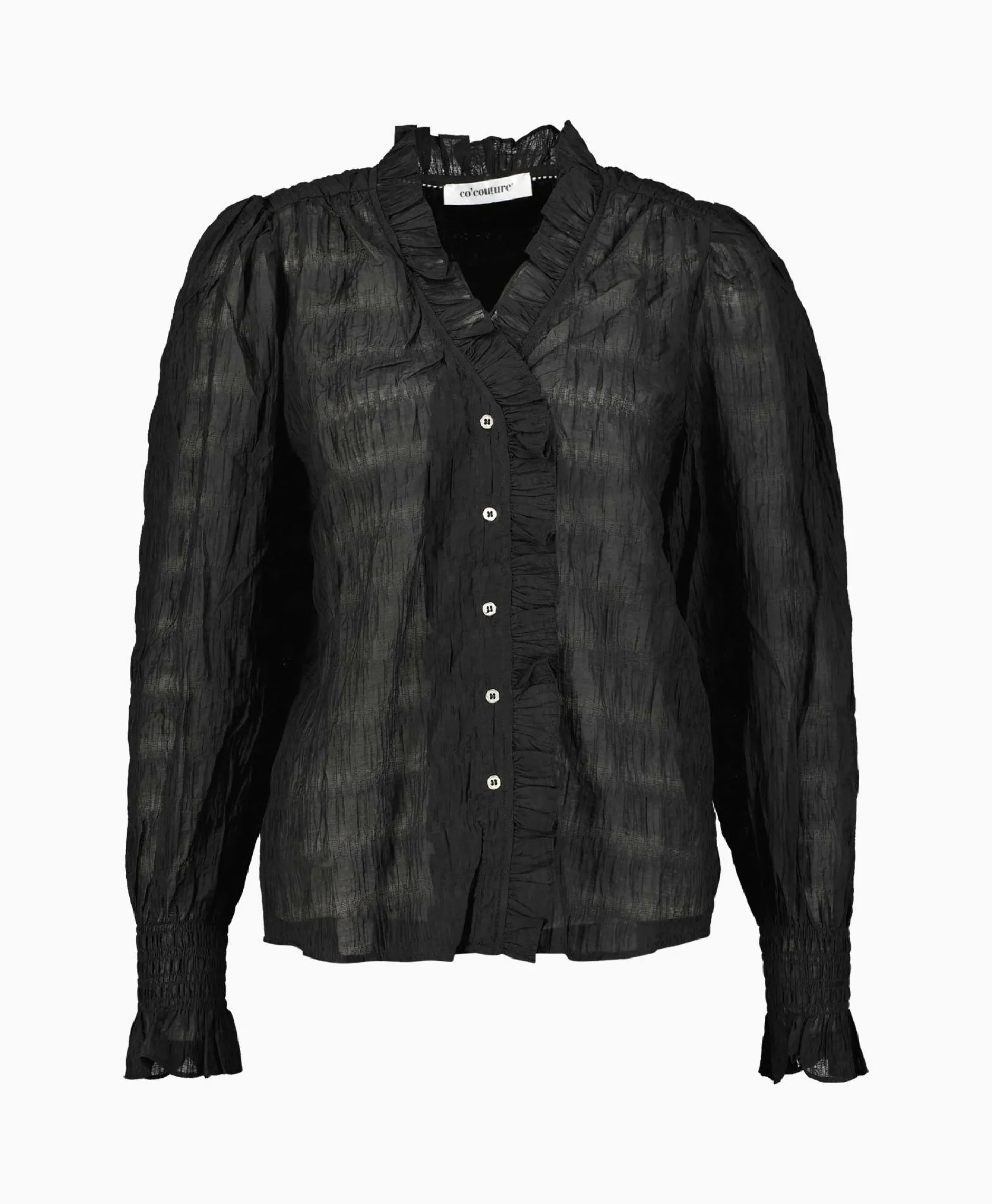 Dames Co'couture Blouses*Co’Couture T-Shirt Korte Mouw Structurecc Line Frill Zwart