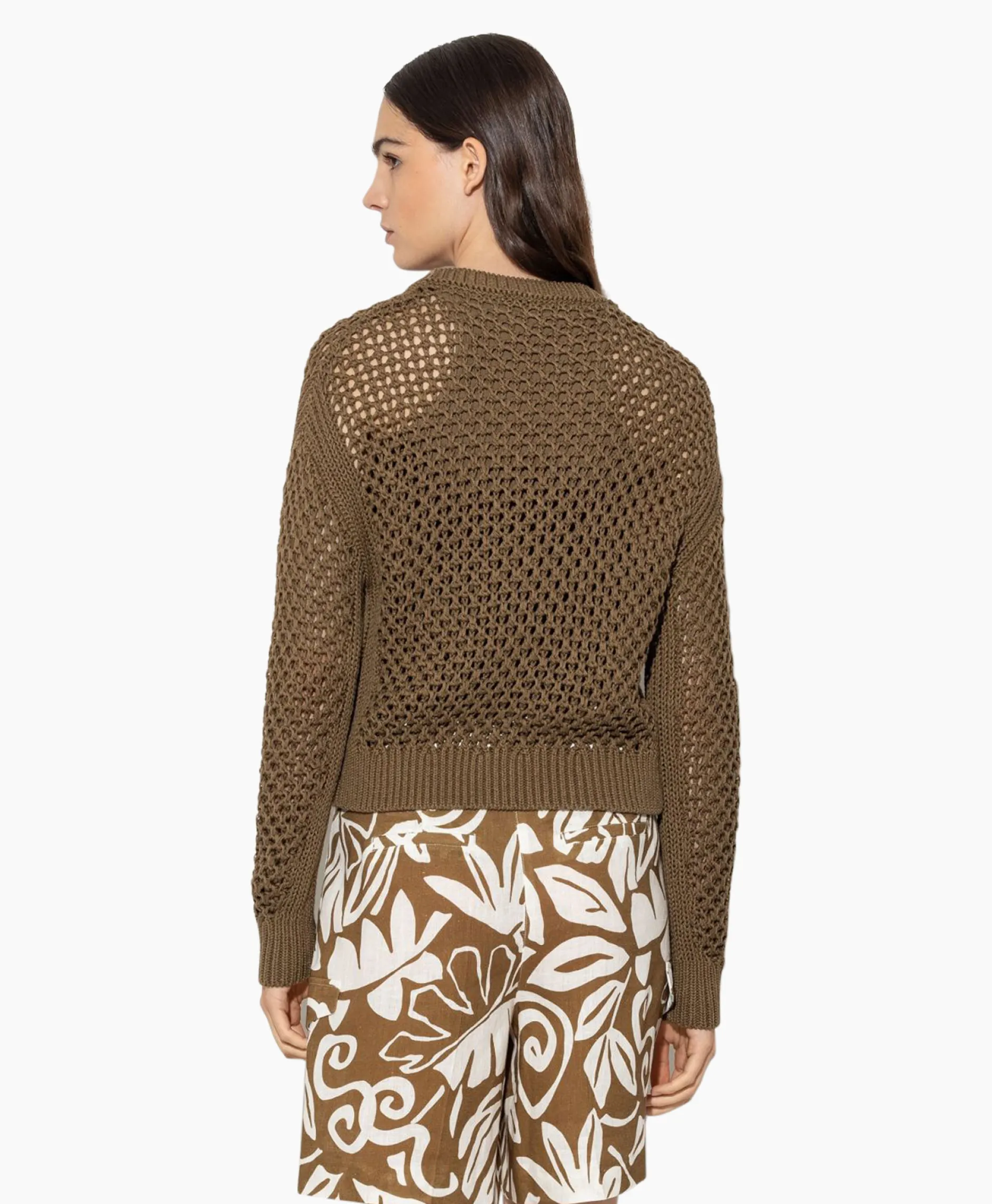 Vest Van Zomers Bandgaren Met Diepe V-Hals, Knoopsluiting En Geribde Boorden. Het Bijzondere Breipatroon Met Gatenstructuur Geeft Het Vest Een Bijzonder Stoere Uitstraling.Ons Model Is 178 Cm Lang En Draagt Maat 36.&Nbsp;