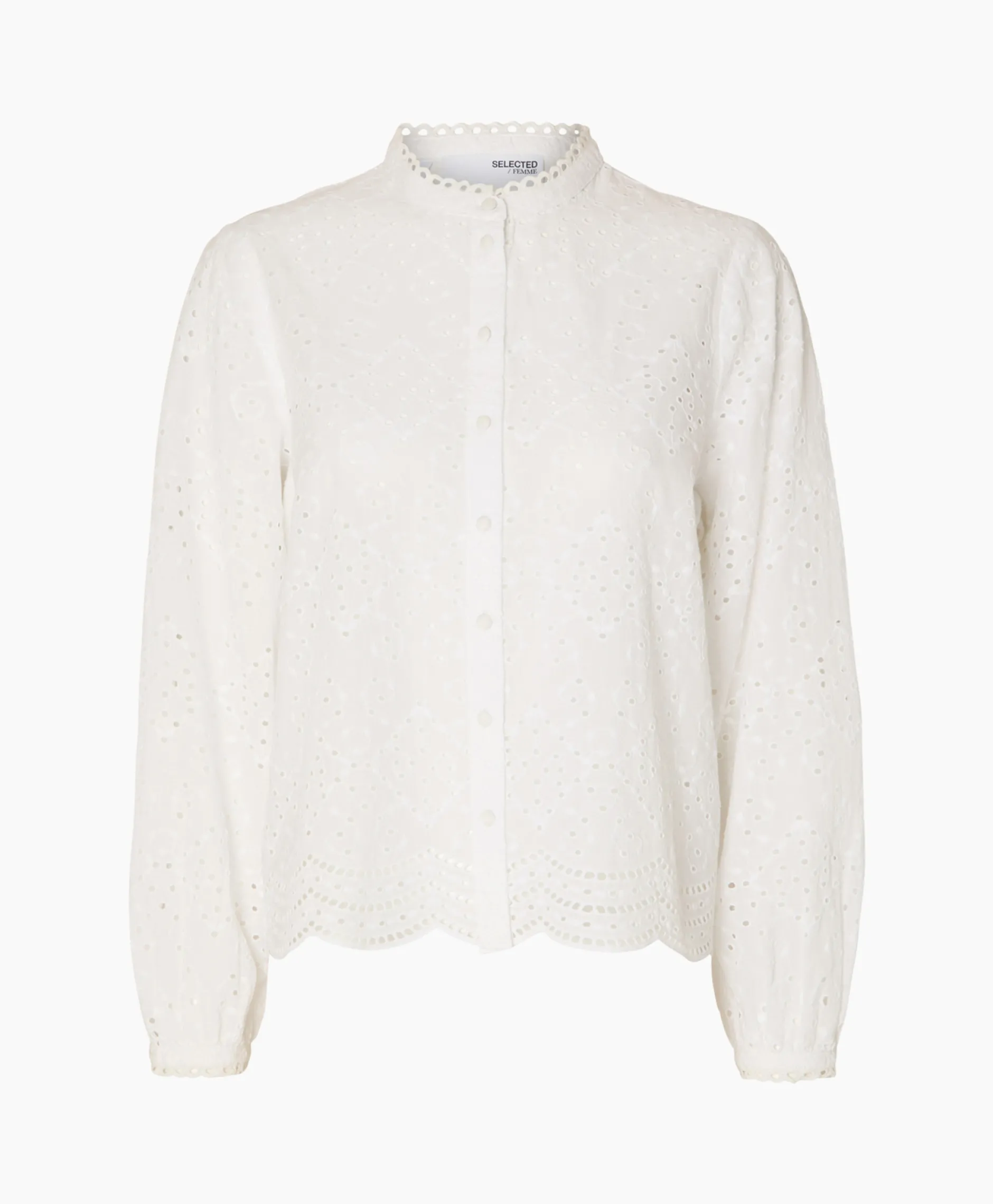 Dames Selected Femme T-Shirts & Tops*T-Shirt Korte Mouw Tatiana L/S Embr Shirt Noos Wit