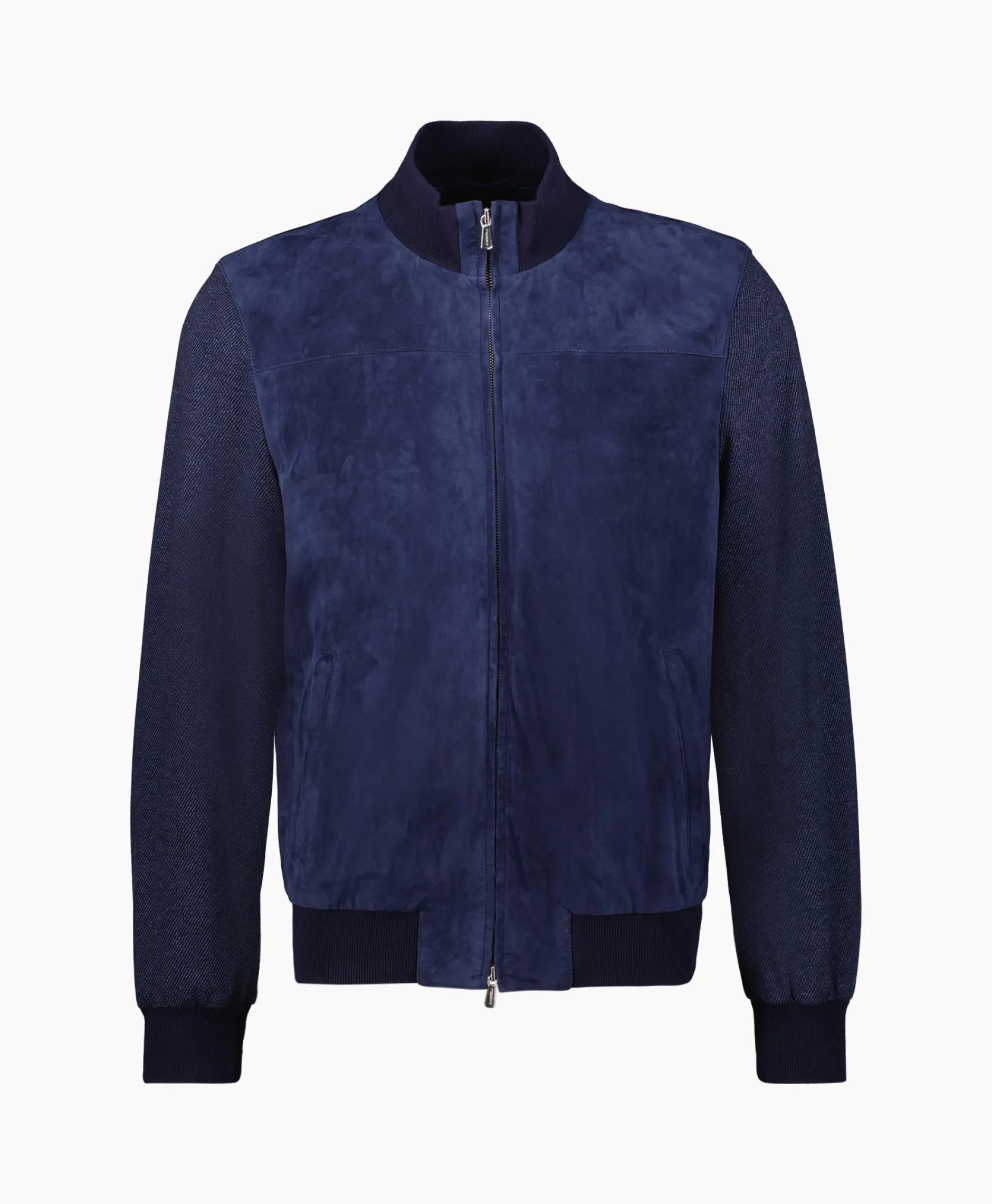 Mandelli Bomberjack In Een Normale Pasvorm, Afgewerkt Met Een Opstaande Kraag, Ingezette Zakken, Heeft Een Knitted Constructie Met Suède Details En Een Tweewegritssluiting. Materiaal: Suède