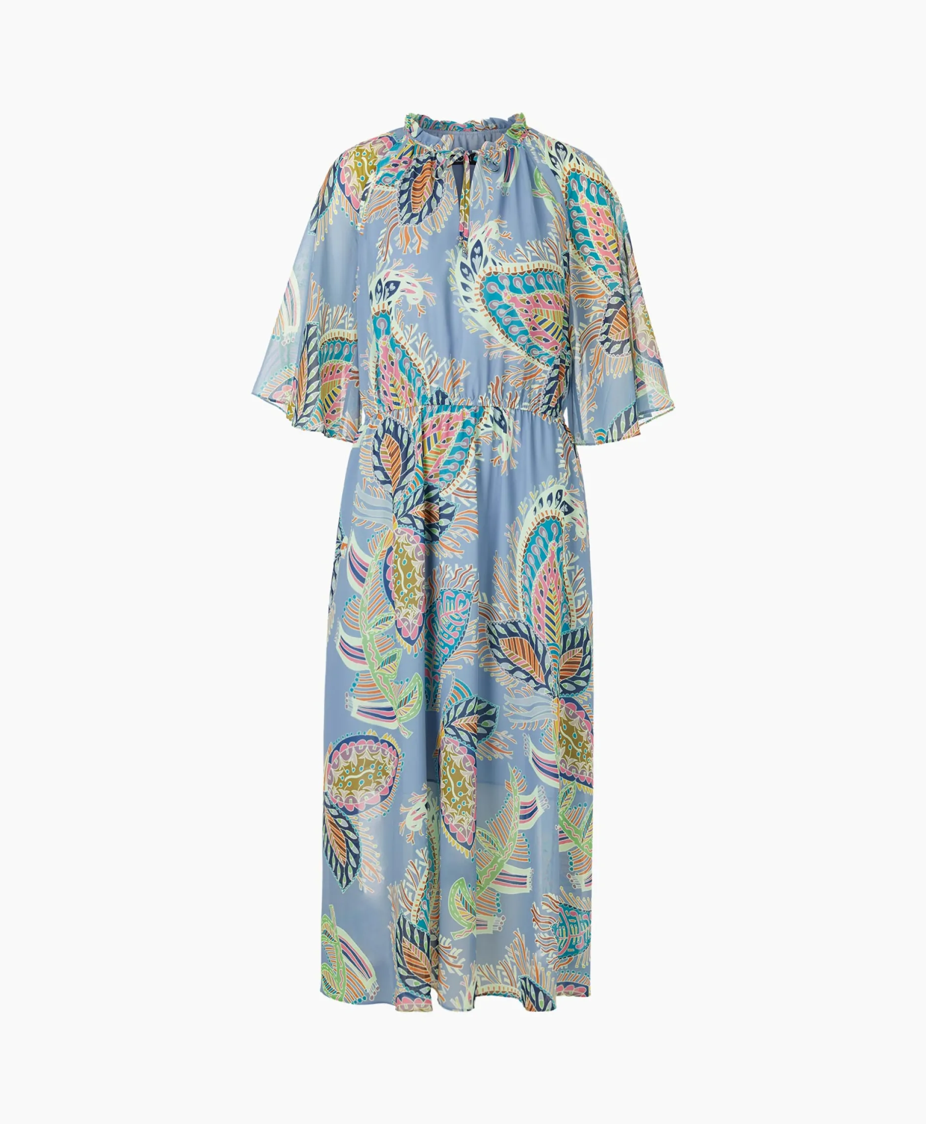 Luchtige Crêpe En Een Fancy Bladmotief Maken De Jurk Tot Een Must-Have Voor De Zomergarderobe. De Vleugelmouwen En De Uitlopende Rok Zorgen Voor Een Zwierig Silhouet. Raglan, Sluiting Met Bandjes En Elastiek In De Taille Maken De Jurk Easy-To-Wear.Het Model Is 179 Cm Lang En Draagt Maat N3 / 38.&Nbsp;